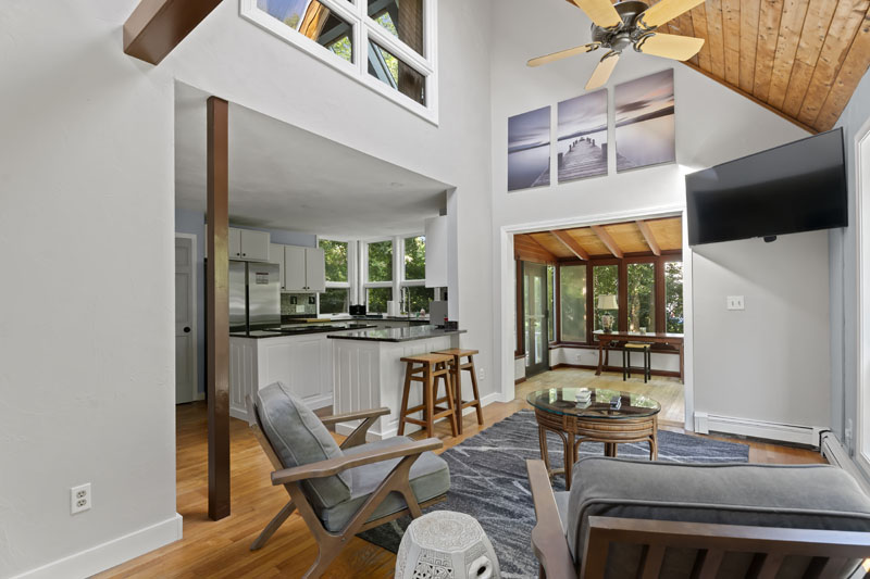 Welcome to your fully renovated lakeside sanctuary, nestled directly across from White Island Pond. Completely refreshed with modern finishes and thoughtful touches throughout, this home offers the perfect blend of comfort, style, and recreation—ideal for up to 8 guests. Step inside to discover a bright and open layout featuring two separate living areas—each equipped with sleeper sofas—perfect for relaxing after a day on the water.